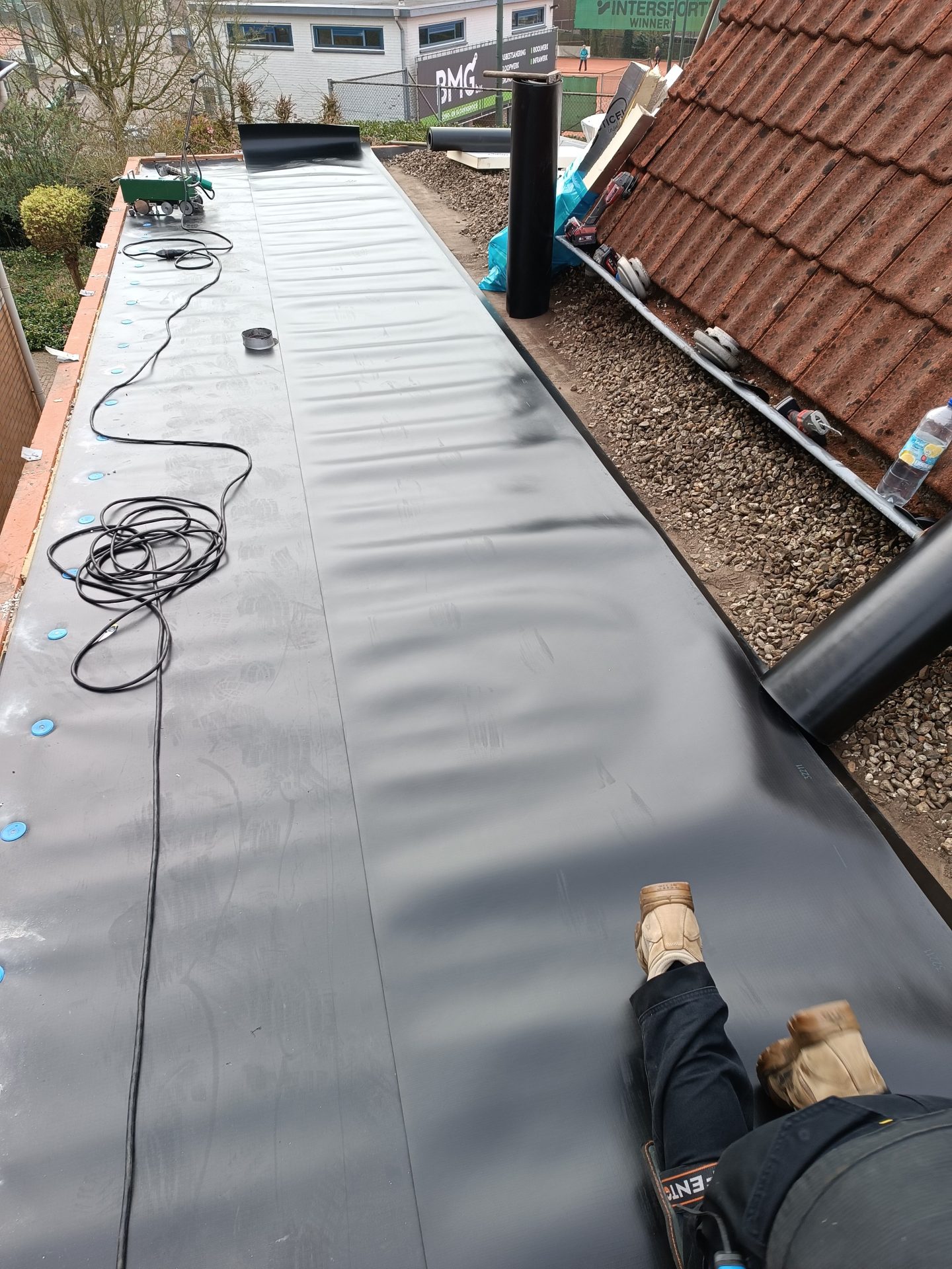 ECB Dakbedekking in Ede is gespecialiseerd in het aanbrengen van ECB-dakbedekking. Dit materiaal combineert de voordelen van kunststof en bitumen en staat bekend om zijn onderhoudsvrij karakter en lange levensduur van minimaal 50 jaar.